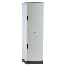 Gli armadi di comando con fronte pc AGR-PC sono forniti con porta posteriore e fronte PC composta da cassetto estraibile con ripiano mouse, porte inferiore cieca e porta superiore cieca o con finestra.